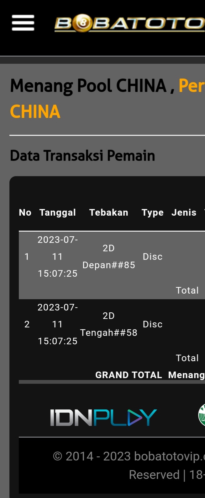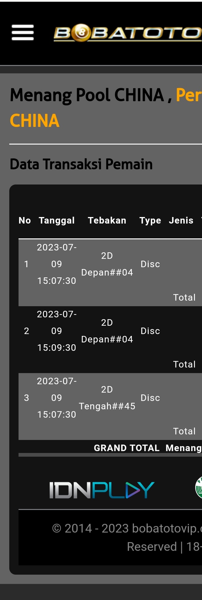 Selamat Bergabung kembali Master Togeller dalam room MASTER CHINAPOOLS.