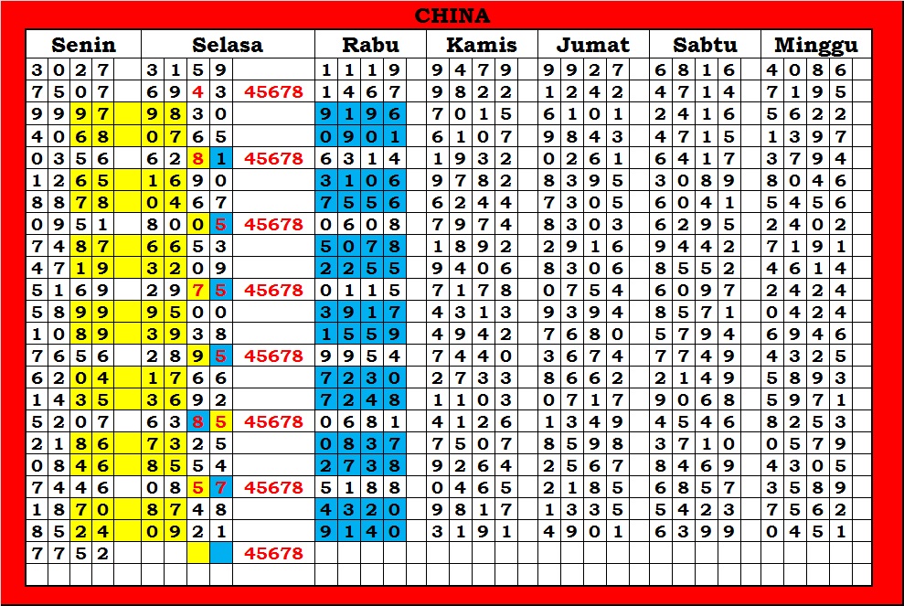 MASTER CHINAPOOLS Minggu, 26-04-2026 Merupakan Prediksi Otomatis yang menggabungkan Metode Kalender Togel Dengan Rumus-rumus kontrol yang sudah terbukti keakuratanya.Gunakan Aplikasi Rekap untuk mendapatkan LN TOP. Harap Maklum Jika kadang meleset MASTER CHINAPOOLS kita. Jadikan ini sebagai perbandingan saja dan tetap UPS