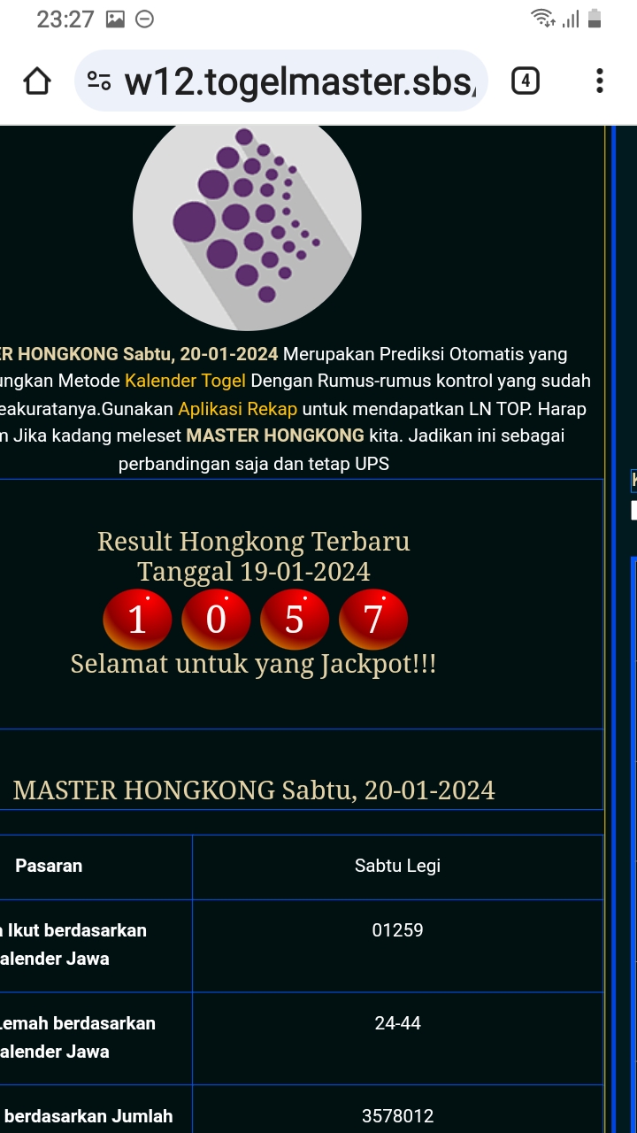 MASTER HONGKONG Jumat, 01-05-2026 Merupakan Prediksi Otomatis yang menggabungkan Metode Kalender Togel Dengan Rumus-rumus kontrol yang sudah terbukti keakuratanya.Gunakan Aplikasi Rekap untuk mendapatkan LN TOP. Harap Maklum Jika kadang meleset MASTER HONGKONG kita. Jadikan ini sebagai perbandingan saja dan tetap UPS