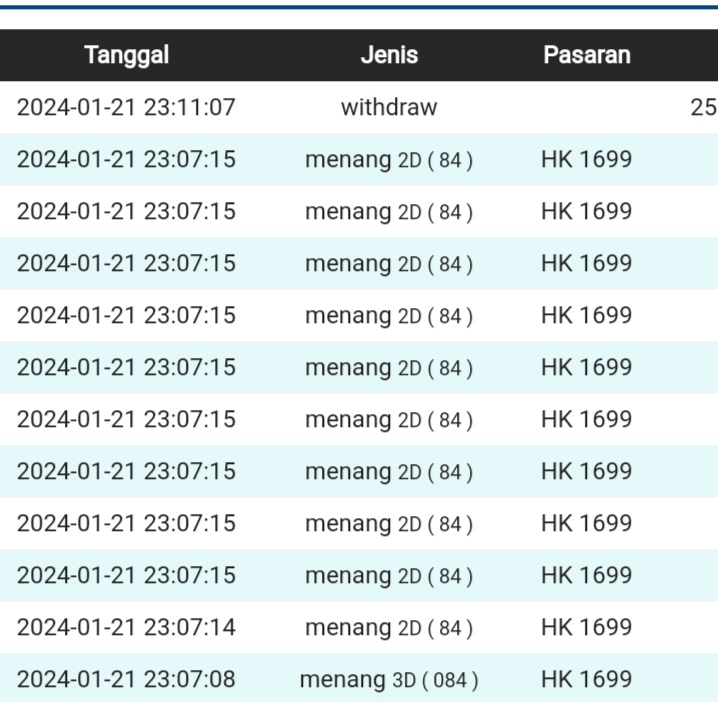 | TABEL DATA HK VERSI 4D TAHUN 2004 HINGGA SEKARANG |