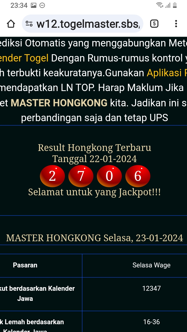 MASTER HONGKONG Kamis, 30-04-2026 Merupakan Prediksi Otomatis yang menggabungkan Metode Kalender Togel Dengan Rumus-rumus kontrol yang sudah terbukti keakuratanya.Gunakan Aplikasi Rekap untuk mendapatkan LN TOP. Harap Maklum Jika kadang meleset MASTER HONGKONG kita. Jadikan ini sebagai perbandingan saja dan tetap UPS