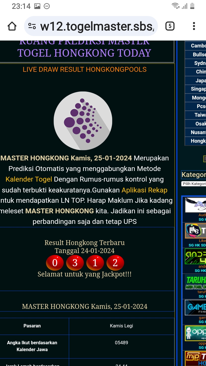 MASTER HONGKONG Kamis, 30-04-2026 Merupakan Prediksi Otomatis yang menggabungkan Metode Kalender Togel Dengan Rumus-rumus kontrol yang sudah terbukti keakuratanya.Gunakan Aplikasi Rekap untuk mendapatkan LN TOP. Harap Maklum Jika kadang meleset MASTER HONGKONG kita. Jadikan ini sebagai perbandingan saja dan tetap UPS