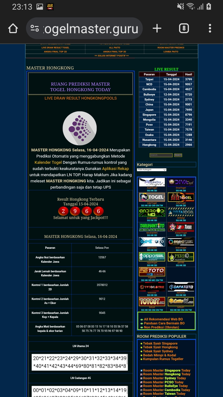 MASTER HONGKONG Rabu, 29-04-2026 Merupakan Prediksi Otomatis yang menggabungkan Metode Kalender Togel Dengan Rumus-rumus kontrol yang sudah terbukti keakuratanya.Gunakan Aplikasi Rekap untuk mendapatkan LN TOP. Harap Maklum Jika kadang meleset MASTER HONGKONG kita. Jadikan ini sebagai perbandingan saja dan tetap UPS