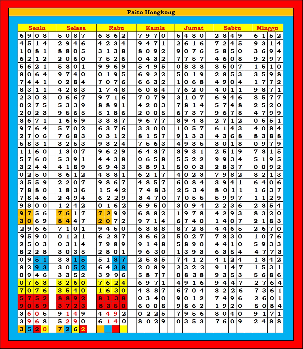 MASTER HONGKONG Selasa, 28-04-2026 Merupakan Prediksi Otomatis yang menggabungkan Metode Kalender Togel Dengan Rumus-rumus kontrol yang sudah terbukti keakuratanya.Gunakan Aplikasi Rekap untuk mendapatkan LN TOP. Harap Maklum Jika kadang meleset MASTER HONGKONG kita. Jadikan ini sebagai perbandingan saja dan tetap UPS