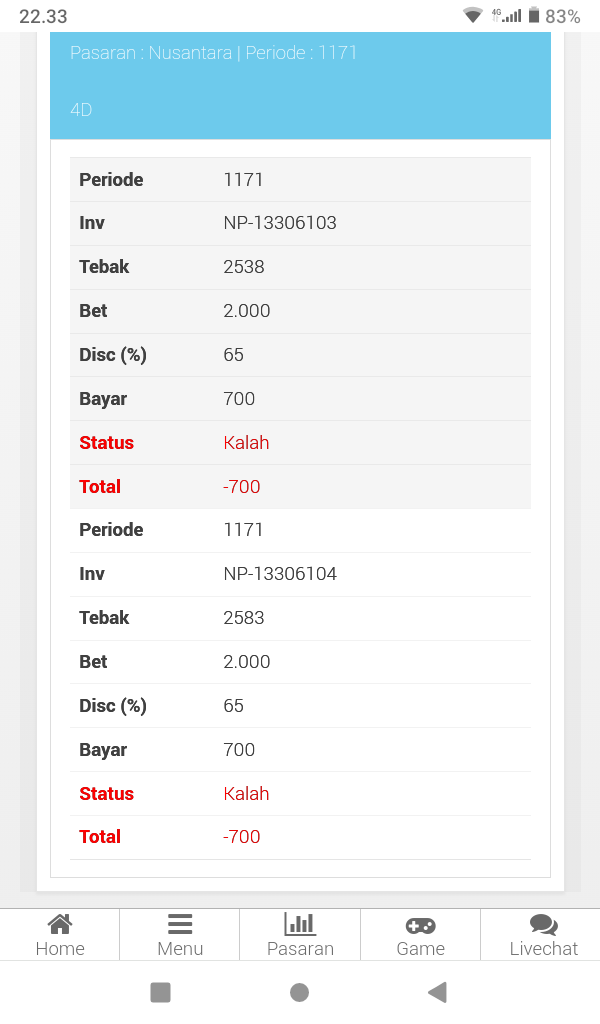 semua postingan komentar SARA, politik, saling menghujat serta saling merendahkan antara prediktor satu dengan yang lainnya jika kami lagi OL mohon maaf langsung kami hapus dan jika telah diperingatkan masih mengulang kami lock datanya