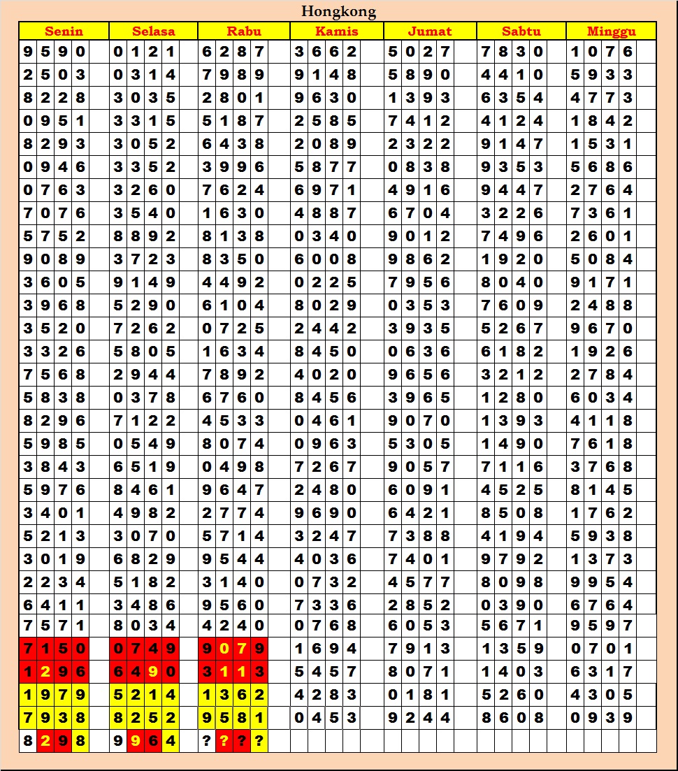 MASTER HONGKONG Senin, 27-04-2026 Merupakan Prediksi Otomatis yang menggabungkan Metode Kalender Togel Dengan Rumus-rumus kontrol yang sudah terbukti keakuratanya.Gunakan Aplikasi Rekap untuk mendapatkan LN TOP. Harap Maklum Jika kadang meleset MASTER HONGKONG kita. Jadikan ini sebagai perbandingan saja dan tetap UPS