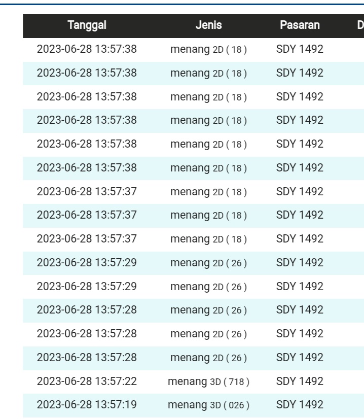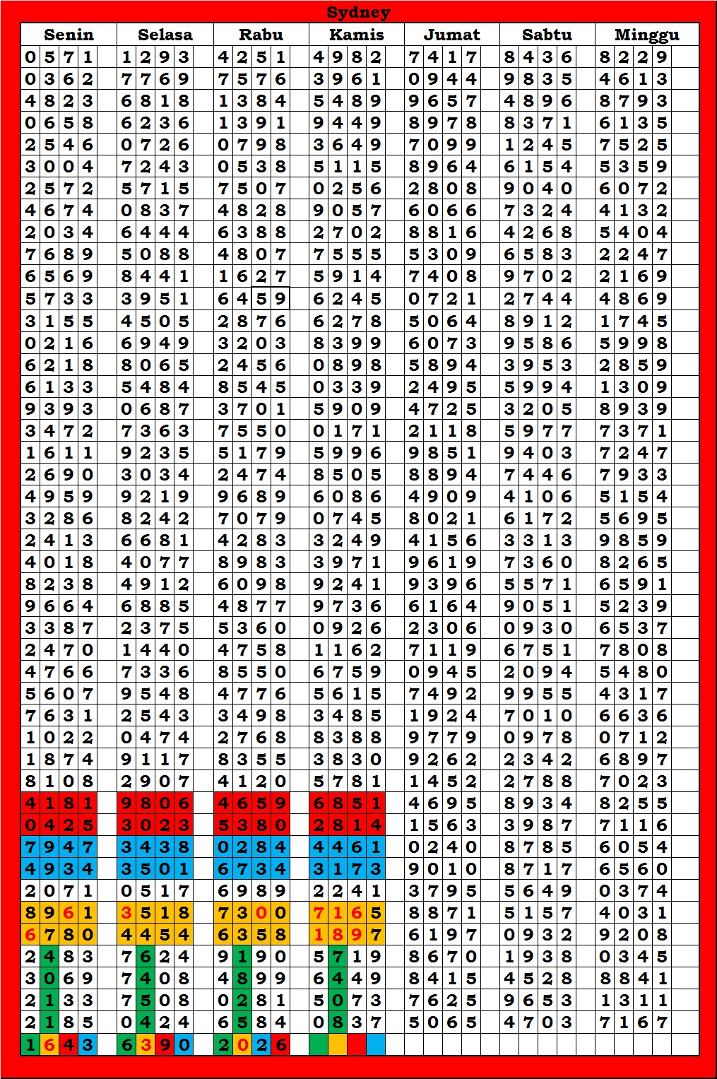 | TABEL DATA SYDNEY 6D VERSI HARIAN |