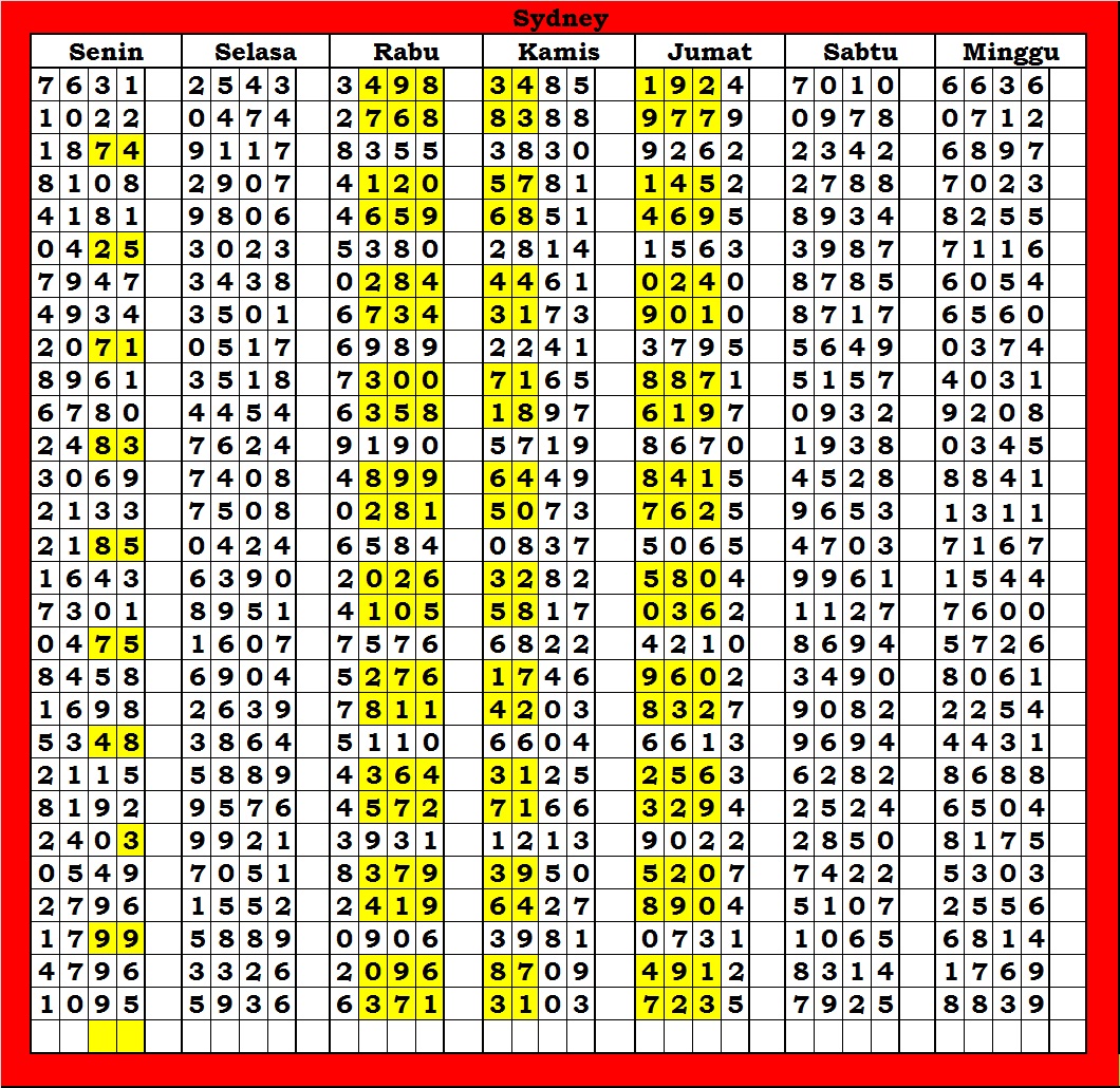 | TABEL DATA SYDNEY 6D VERSI HARIAN |