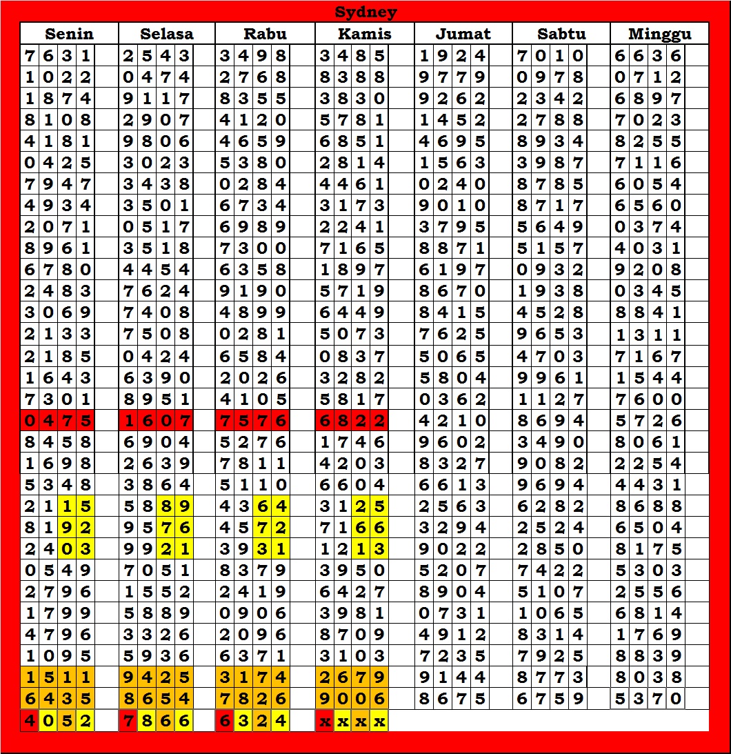 MASTER SYDNEY Rabu, 29-04-2026 Merupakan Prediksi Otomatis yang menggabungkan Metode Kalender Togel Dengan Rumus-rumus kontrol yang sudah terbukti keakuratanya.Gunakan Aplikasi Rekap untuk mendapatkan LN TOP. Harap Maklum Jika kadang meleset MASTER SYDNEY kita. Jadikan ini sebagai perbandingan saja dan tetap UPS