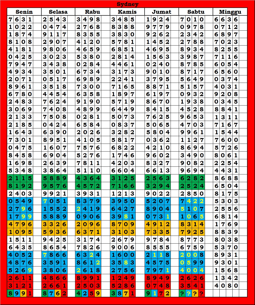 | TABEL DATA SYDNEY 6D VERSI HARIAN |