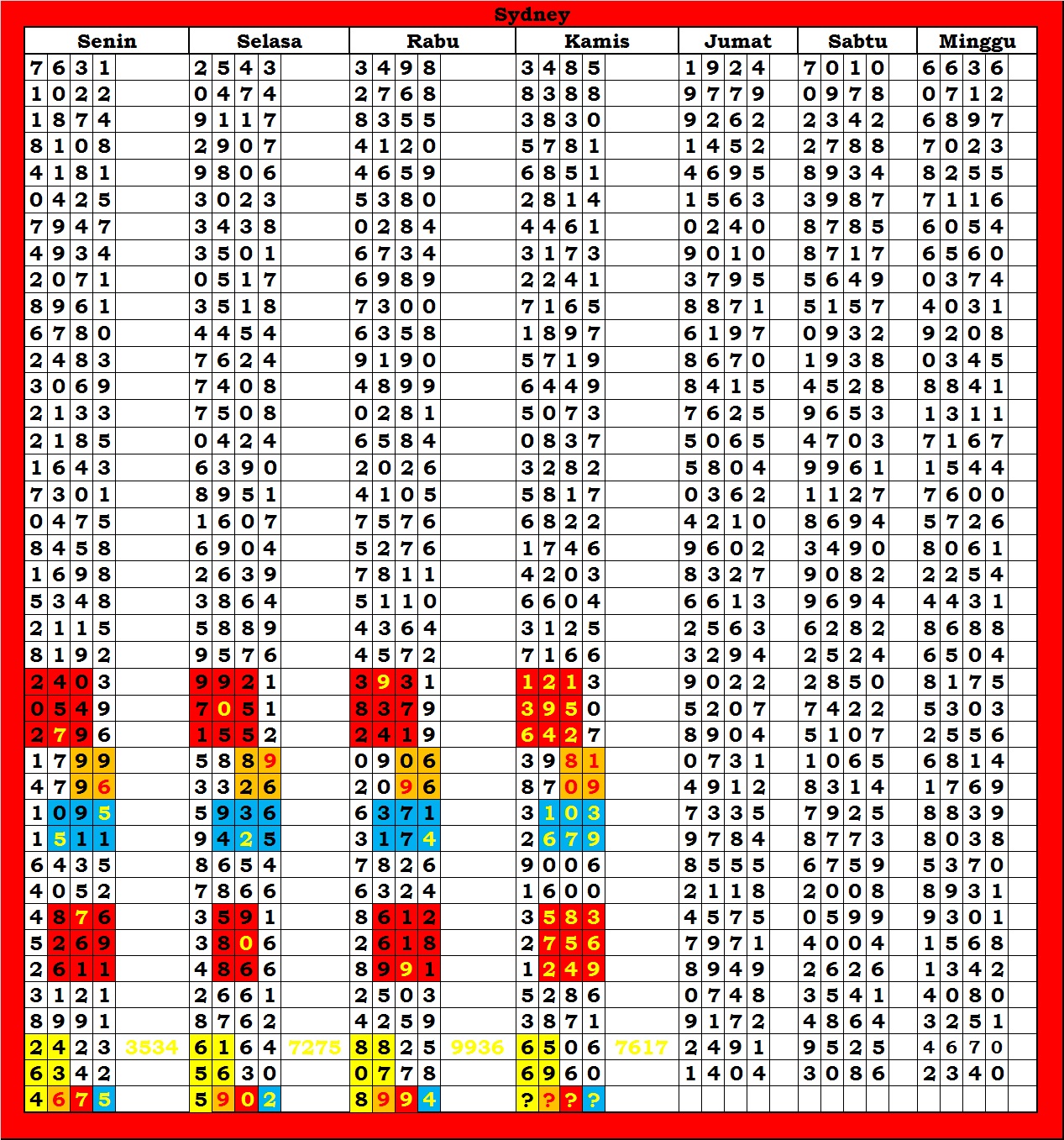 | TABEL DATA SYDNEY 6D VERSI HARIAN |
