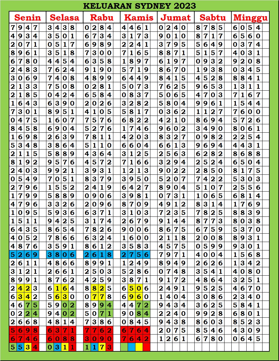 | TABEL DATA SYDNEY 6D VERSI HARIAN |