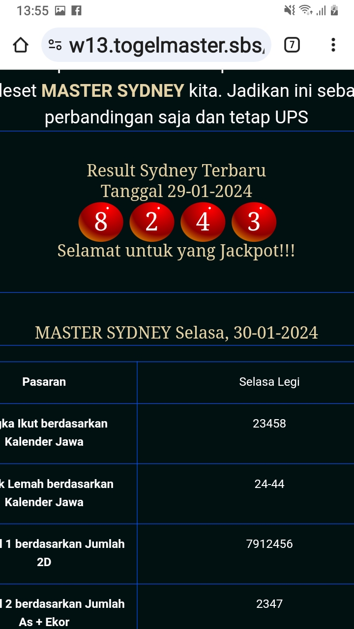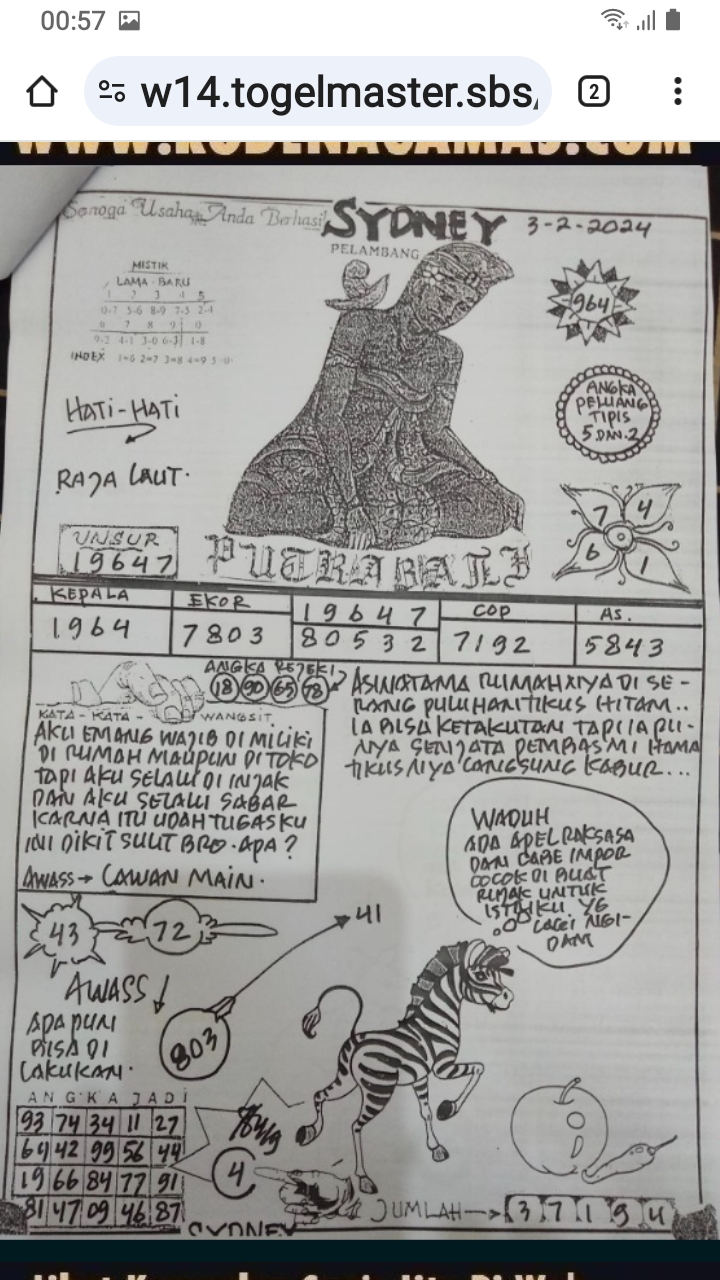 MASTER SYDNEY Selasa, 28-04-2026 Merupakan Prediksi Otomatis yang menggabungkan Metode Kalender Togel Dengan Rumus-rumus kontrol yang sudah terbukti keakuratanya.Gunakan Aplikasi Rekap untuk mendapatkan LN TOP. Harap Maklum Jika kadang meleset MASTER SYDNEY kita. Jadikan ini sebagai perbandingan saja dan tetap UPS