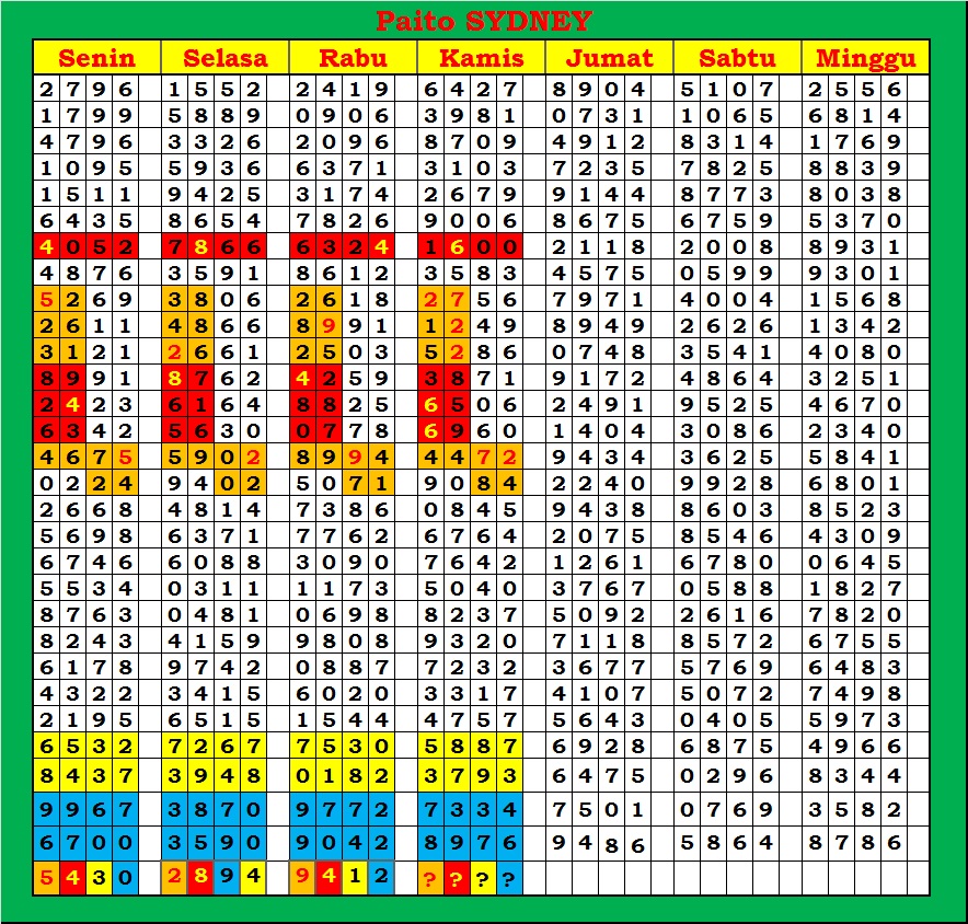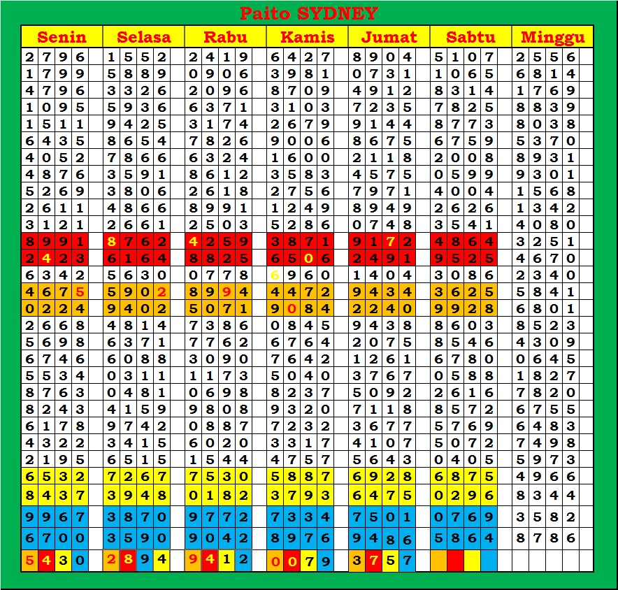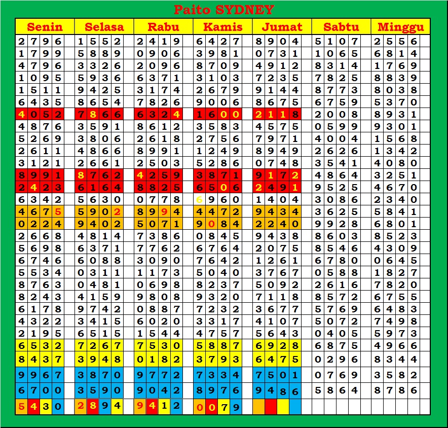 | PAITO WARNA SYDNEY 4D HARIAN |
