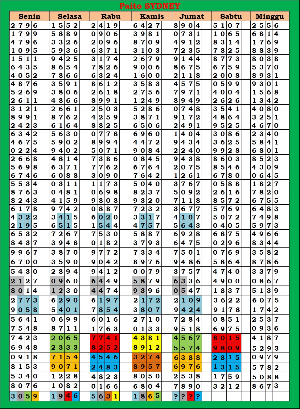 | PAITO WARNA SYDNEY 4D HARIAN |