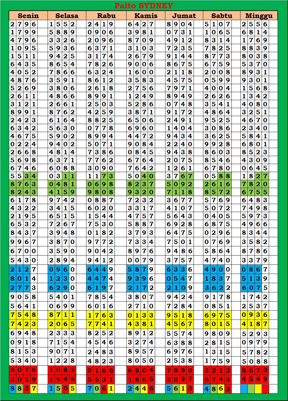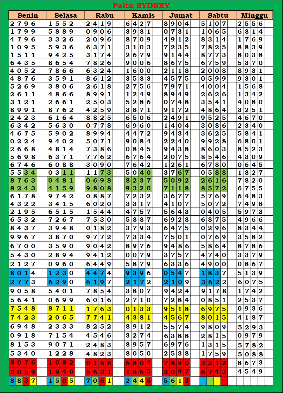 | TABEL DATA SYDNEY 6D VERSI HARIAN |