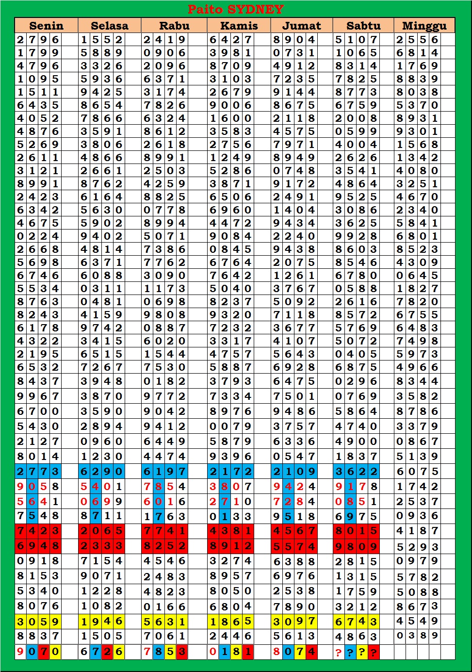 | TABEL DATA SYDNEY 6D VERSI HARIAN |