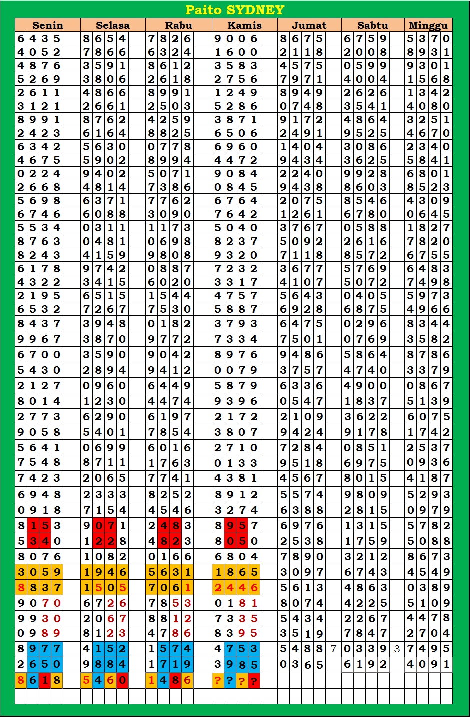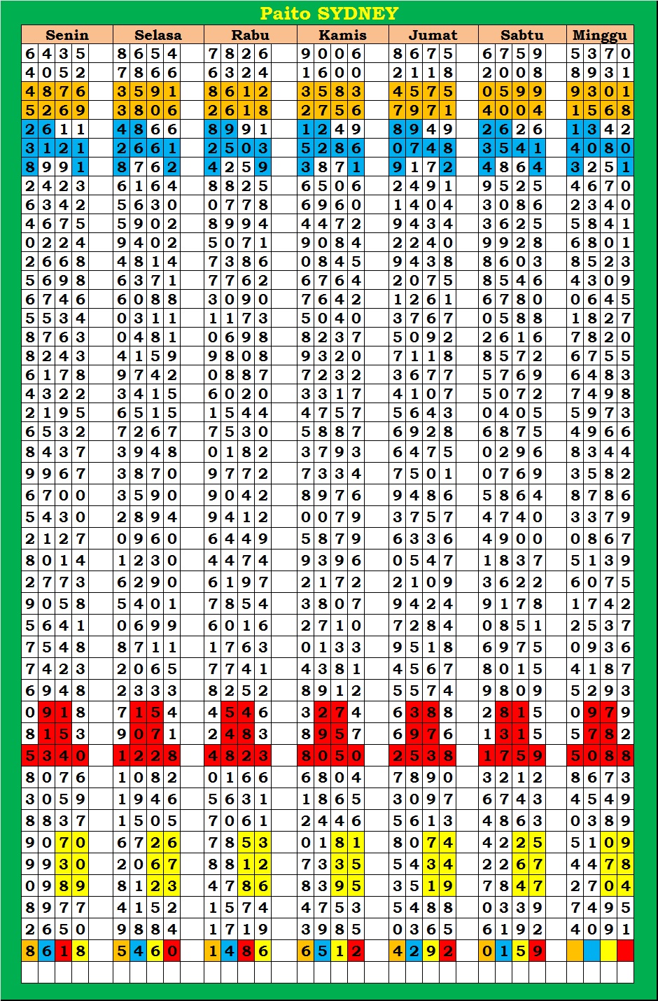 | TABEL DATA SYDNEY 6D VERSI HARIAN |