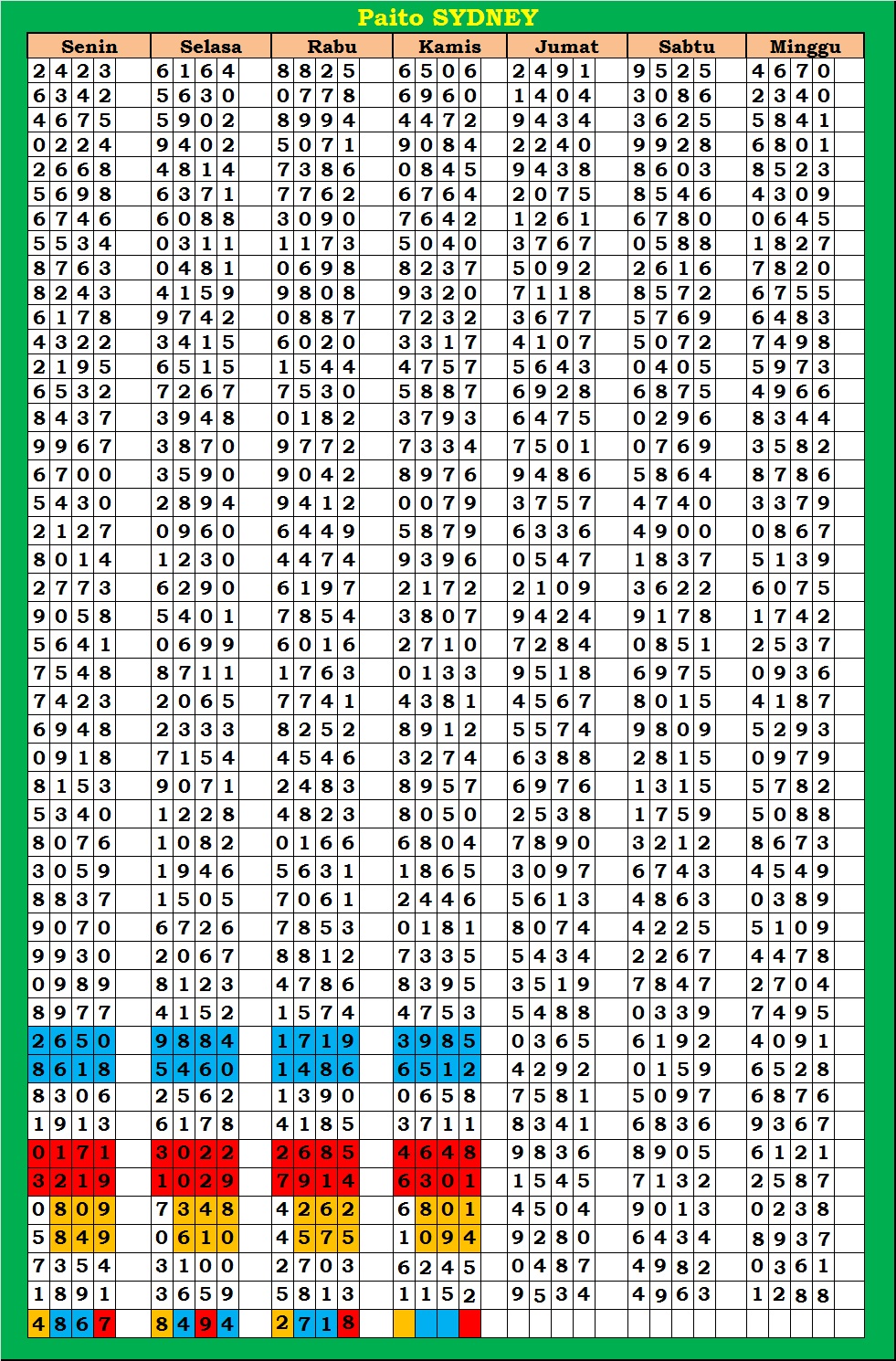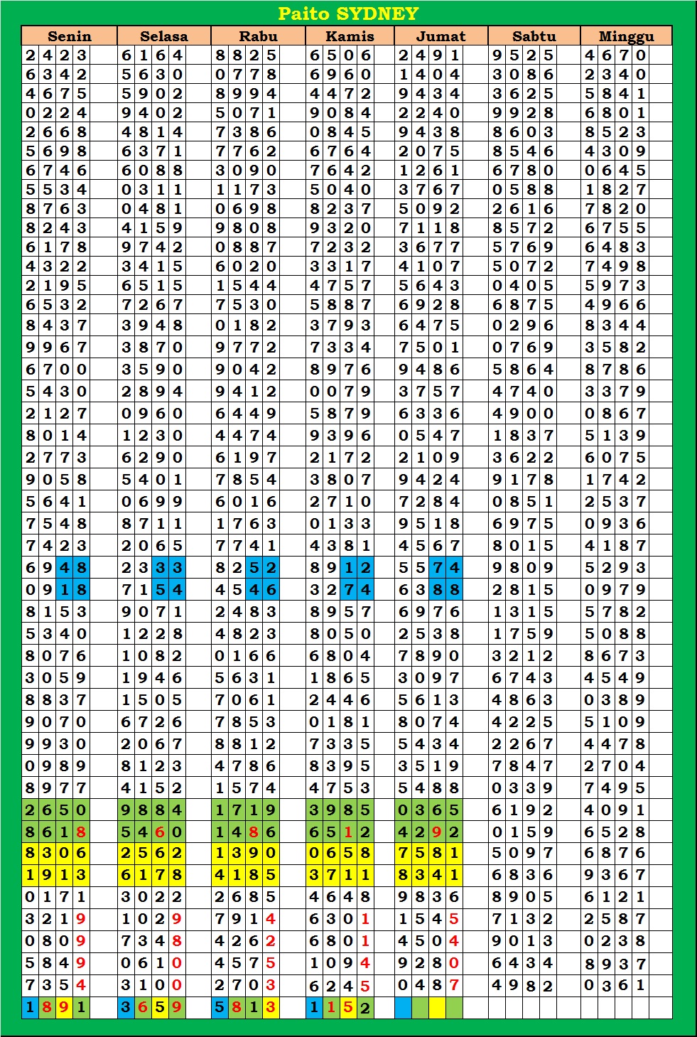 MASTER SYDNEY Senin, 27-04-2026 Merupakan Prediksi Otomatis yang menggabungkan Metode Kalender Togel Dengan Rumus-rumus kontrol yang sudah terbukti keakuratanya.Gunakan Aplikasi Rekap untuk mendapatkan LN TOP. Harap Maklum Jika kadang meleset MASTER SYDNEY kita. Jadikan ini sebagai perbandingan saja dan tetap UPS
