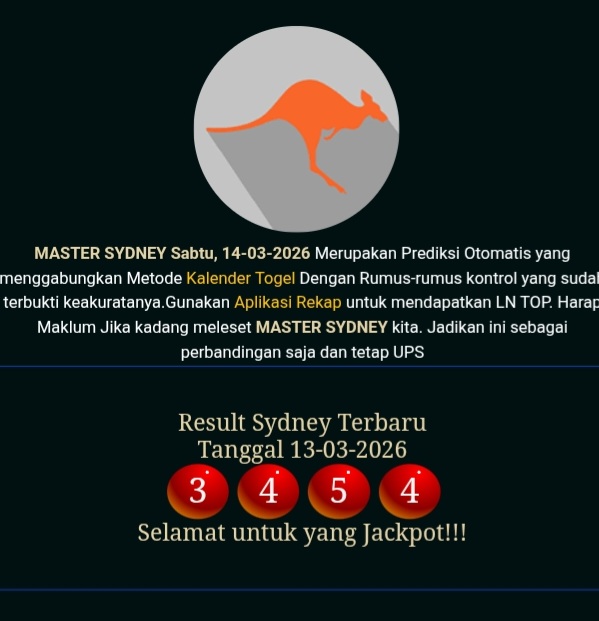 MASTER SYDNEY Minggu, 26-04-2026 Merupakan Prediksi Otomatis yang menggabungkan Metode Kalender Togel Dengan Rumus-rumus kontrol yang sudah terbukti keakuratanya.Gunakan Aplikasi Rekap untuk mendapatkan LN TOP. Harap Maklum Jika kadang meleset MASTER SYDNEY kita. Jadikan ini sebagai perbandingan saja dan tetap UPS