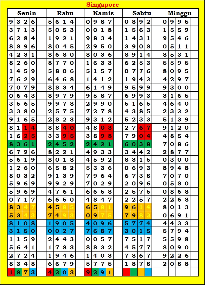 MASTER SINGAPURA Sabtu, 02-05-2026 Merupakan Prediksi Otomatis yang menggabungkan Metode Kalender Togel Dengan Rumus-rumus kontrol yang sudah terbukti keakuratanya.Gunakan Aplikasi Rekap untuk mendapatkan LN TOP. Harap Maklum Jika kadang meleset MASTER SINGAPURA kita. Jadikan ini sebagai perbandingan saja dan tetap UPS