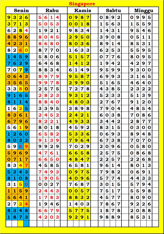 MASTER SINGAPURA Sabtu, 25-04-2026 Merupakan Prediksi Otomatis yang menggabungkan Metode Kalender Togel Dengan Rumus-rumus kontrol yang sudah terbukti keakuratanya.Gunakan Aplikasi Rekap untuk mendapatkan LN TOP. Harap Maklum Jika kadang meleset MASTER SINGAPURA kita. Jadikan ini sebagai perbandingan saja dan tetap UPS