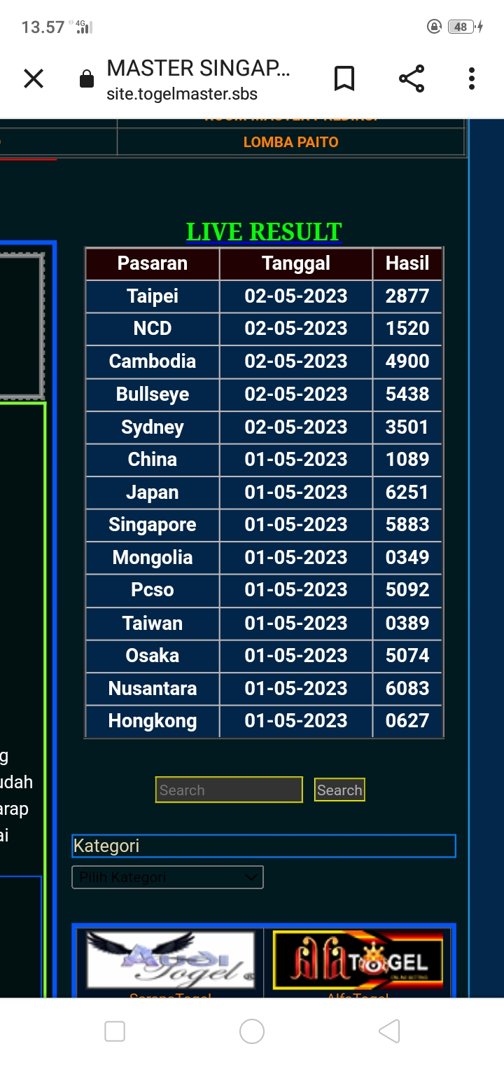MASTER SINGAPURA Sabtu, 02-05-2026 Merupakan Prediksi Otomatis yang menggabungkan Metode Kalender Togel Dengan Rumus-rumus kontrol yang sudah terbukti keakuratanya.Gunakan Aplikasi Rekap untuk mendapatkan LN TOP. Harap Maklum Jika kadang meleset MASTER SINGAPURA kita. Jadikan ini sebagai perbandingan saja dan tetap UPS