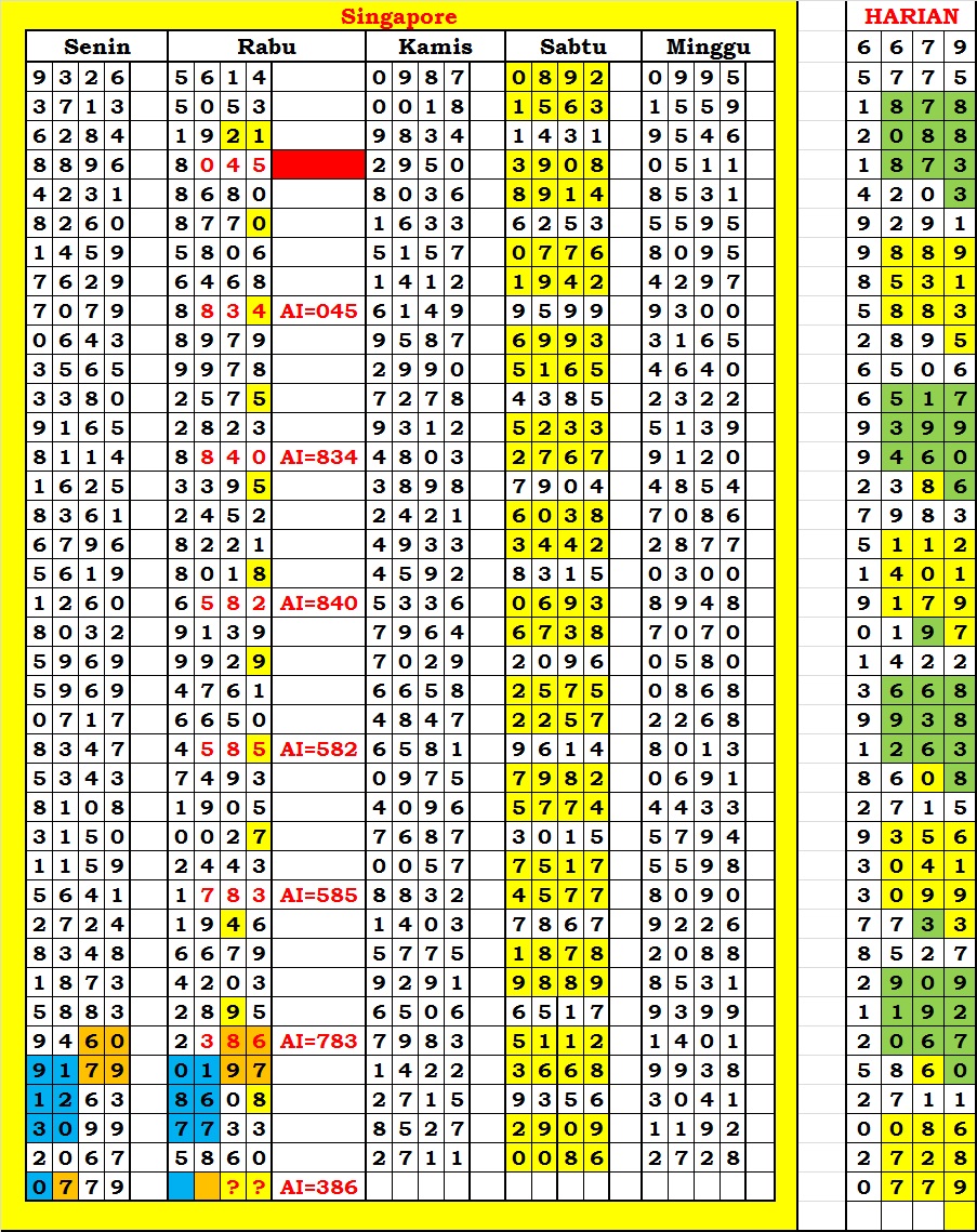 MASTER SINGAPURA Kamis, 30-04-2026 Merupakan Prediksi Otomatis yang menggabungkan Metode Kalender Togel Dengan Rumus-rumus kontrol yang sudah terbukti keakuratanya.Gunakan Aplikasi Rekap untuk mendapatkan LN TOP. Harap Maklum Jika kadang meleset MASTER SINGAPURA kita. Jadikan ini sebagai perbandingan saja dan tetap UPS
