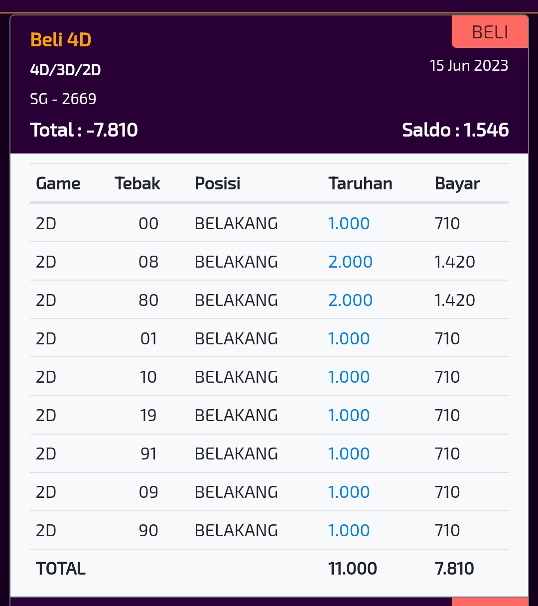 2 8 1 5=6789…..bermain di posisi di 2D BLK