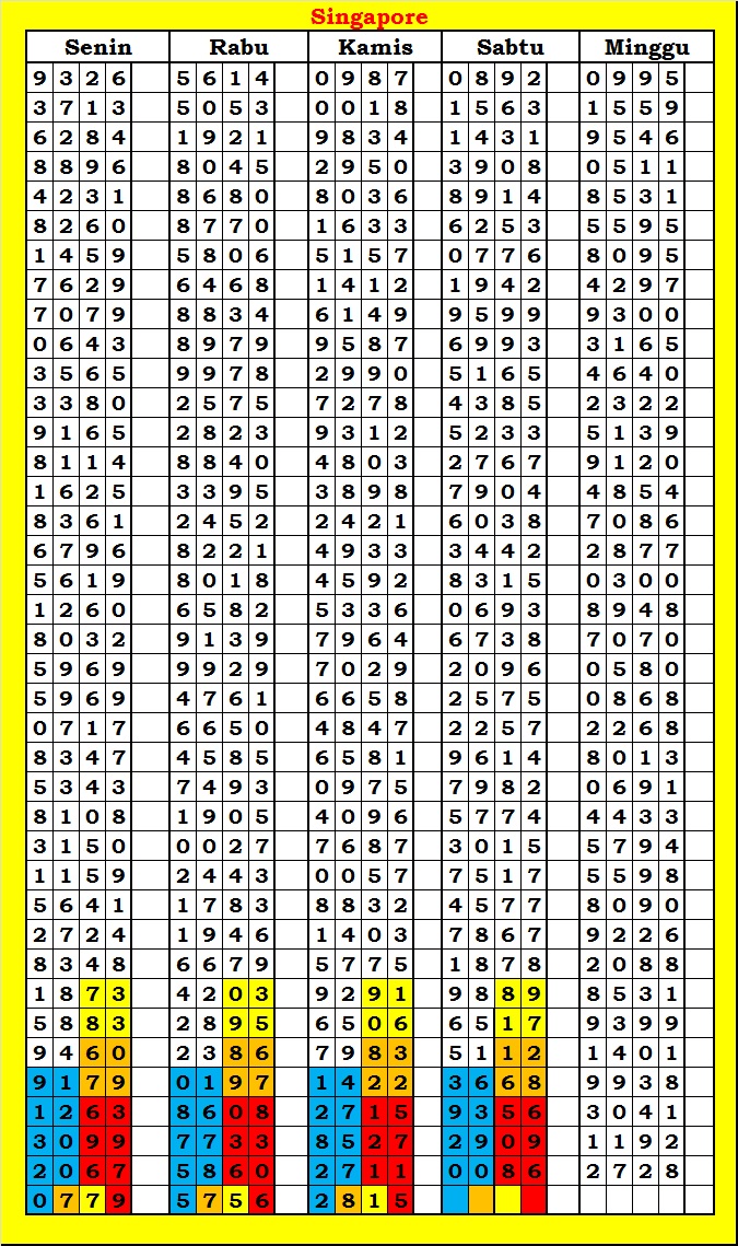 MASTER SINGAPURA Kamis, 30-04-2026 Merupakan Prediksi Otomatis yang menggabungkan Metode Kalender Togel Dengan Rumus-rumus kontrol yang sudah terbukti keakuratanya.Gunakan Aplikasi Rekap untuk mendapatkan LN TOP. Harap Maklum Jika kadang meleset MASTER SINGAPURA kita. Jadikan ini sebagai perbandingan saja dan tetap UPS