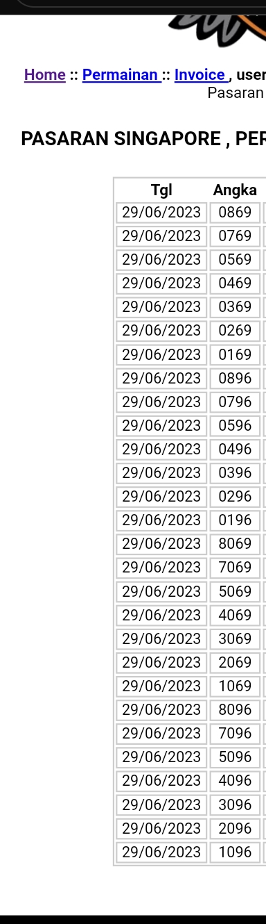 Angka Mati berdasarkan kepala & ekor harian19 10 11 12 14 59 50 51 52 54 69 60 61 62 64 79 70 71 72 74 99 90 91 92 94