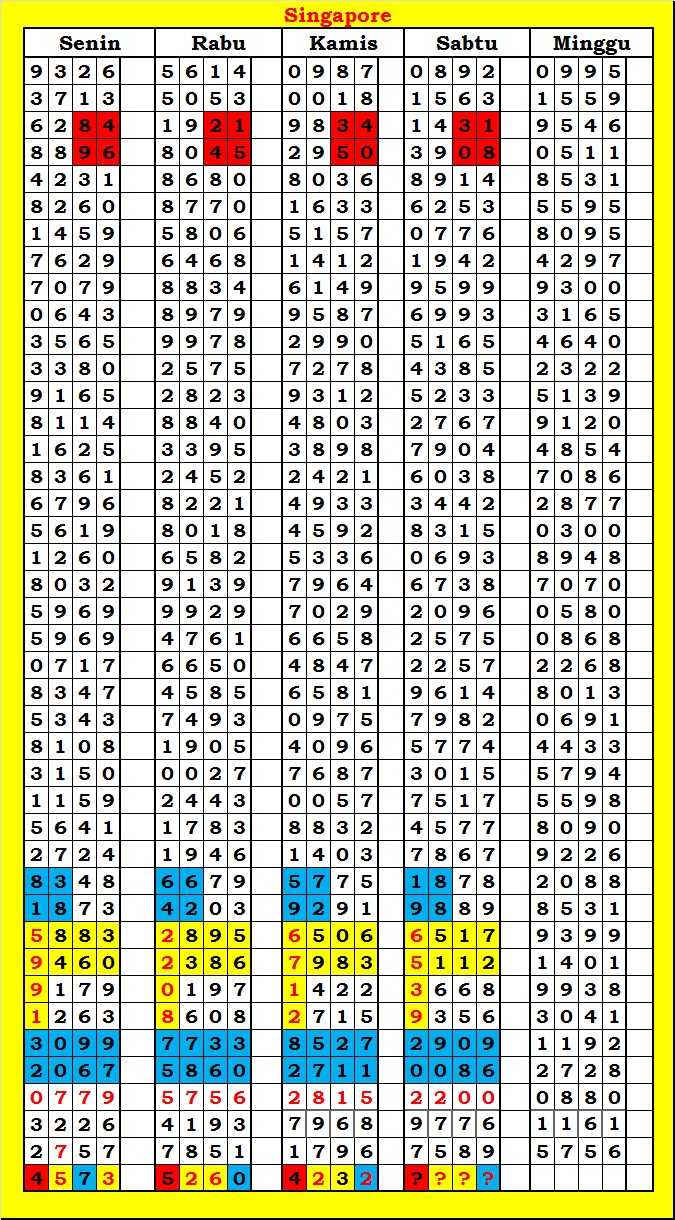 MASTER SINGAPURA Rabu, 29-04-2026 Merupakan Prediksi Otomatis yang menggabungkan Metode Kalender Togel Dengan Rumus-rumus kontrol yang sudah terbukti keakuratanya.Gunakan Aplikasi Rekap untuk mendapatkan LN TOP. Harap Maklum Jika kadang meleset MASTER SINGAPURA kita. Jadikan ini sebagai perbandingan saja dan tetap UPS