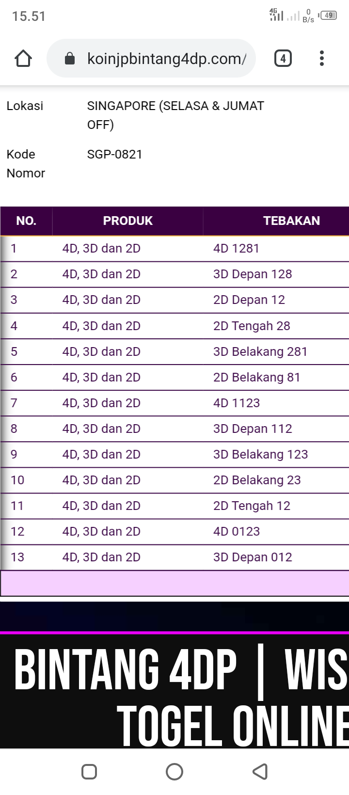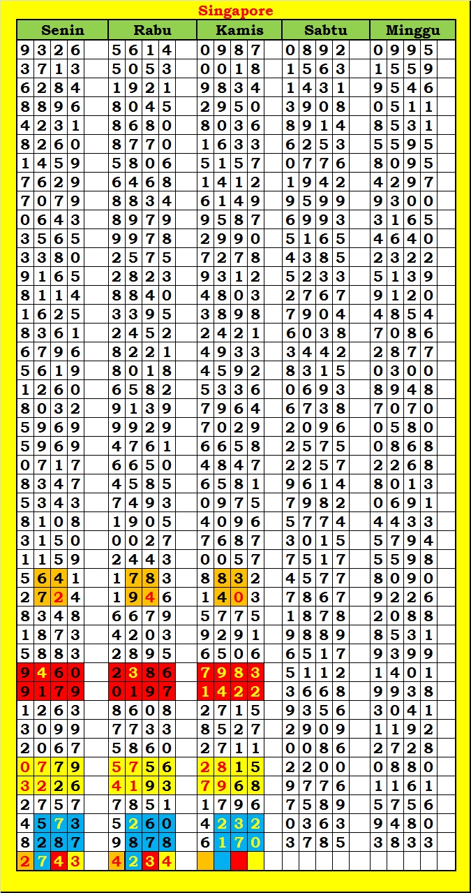 MASTER SINGAPURA Rabu, 29-04-2026 Merupakan Prediksi Otomatis yang menggabungkan Metode Kalender Togel Dengan Rumus-rumus kontrol yang sudah terbukti keakuratanya.Gunakan Aplikasi Rekap untuk mendapatkan LN TOP. Harap Maklum Jika kadang meleset MASTER SINGAPURA kita. Jadikan ini sebagai perbandingan saja dan tetap UPS