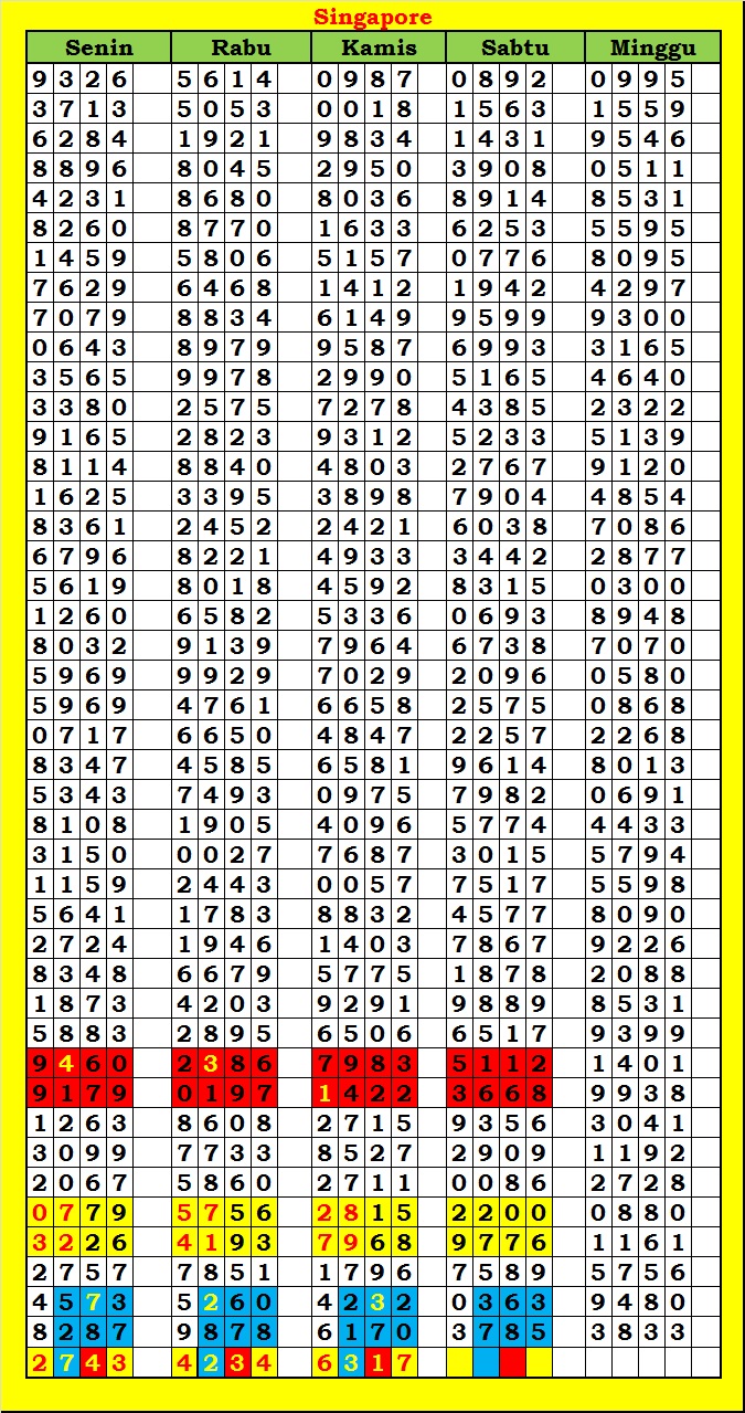 MASTER SINGAPURA Rabu, 29-04-2026 Merupakan Prediksi Otomatis yang menggabungkan Metode Kalender Togel Dengan Rumus-rumus kontrol yang sudah terbukti keakuratanya.Gunakan Aplikasi Rekap untuk mendapatkan LN TOP. Harap Maklum Jika kadang meleset MASTER SINGAPURA kita. Jadikan ini sebagai perbandingan saja dan tetap UPS