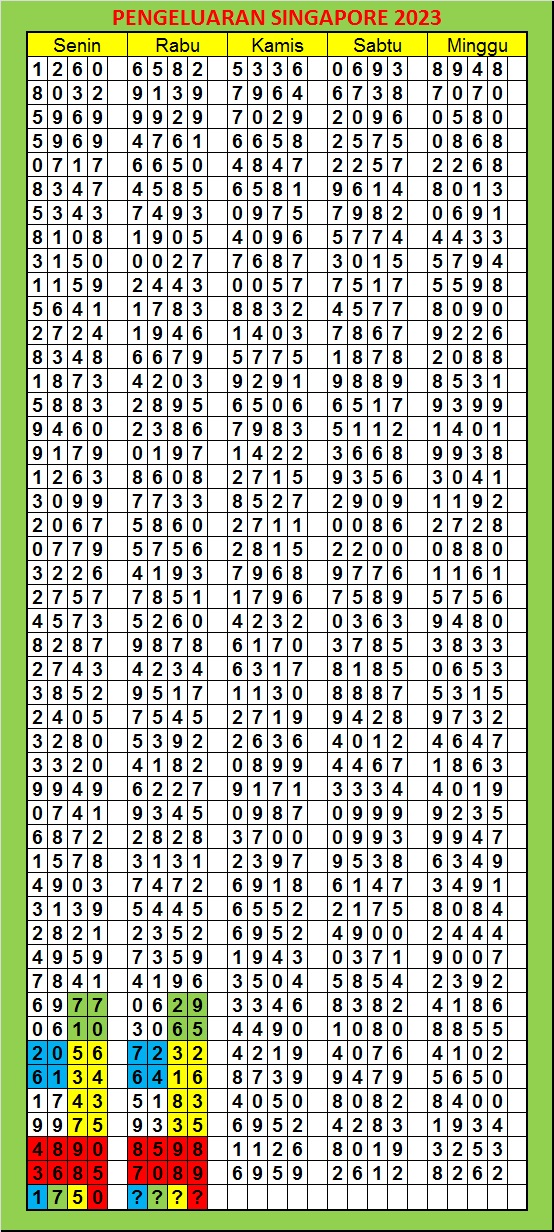 MASTER SINGAPURA Rabu, 29-04-2026 Merupakan Prediksi Otomatis yang menggabungkan Metode Kalender Togel Dengan Rumus-rumus kontrol yang sudah terbukti keakuratanya.Gunakan Aplikasi Rekap untuk mendapatkan LN TOP. Harap Maklum Jika kadang meleset MASTER SINGAPURA kita. Jadikan ini sebagai perbandingan saja dan tetap UPS
