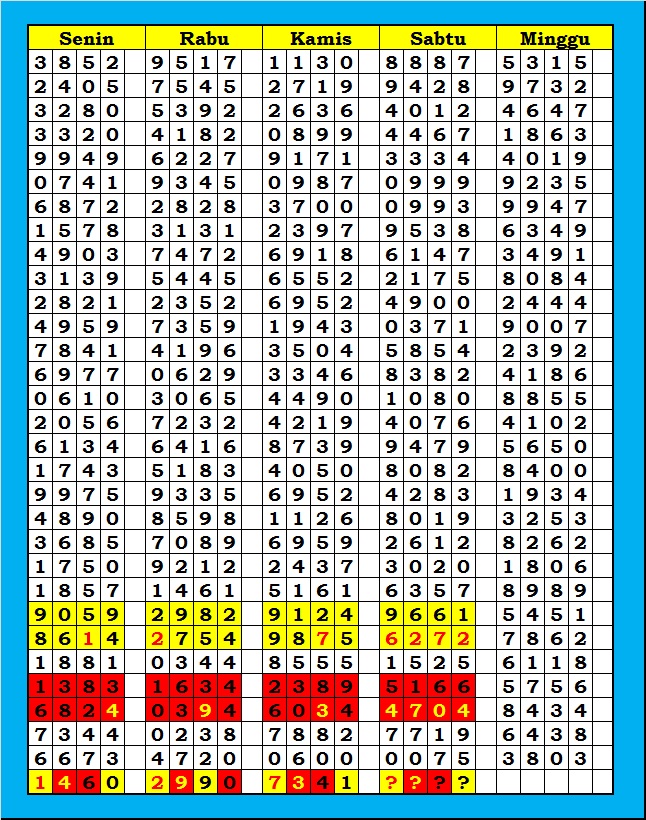 Prediksi Ini Berubah secara otomatis sesuai hari dan result pasaran masing-masing. Untuk melihat prediksi sebelumnya klik tombol nomor hitam diatas