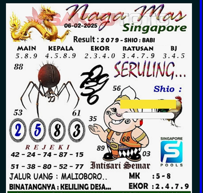 MASTER SINGAPURA Minggu, 26-04-2026 Merupakan Prediksi Otomatis yang menggabungkan Metode Kalender Togel Dengan Rumus-rumus kontrol yang sudah terbukti keakuratanya.Gunakan Aplikasi Rekap untuk mendapatkan LN TOP. Harap Maklum Jika kadang meleset MASTER SINGAPURA kita. Jadikan ini sebagai perbandingan saja dan tetap UPS