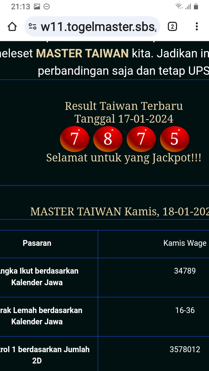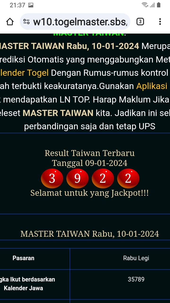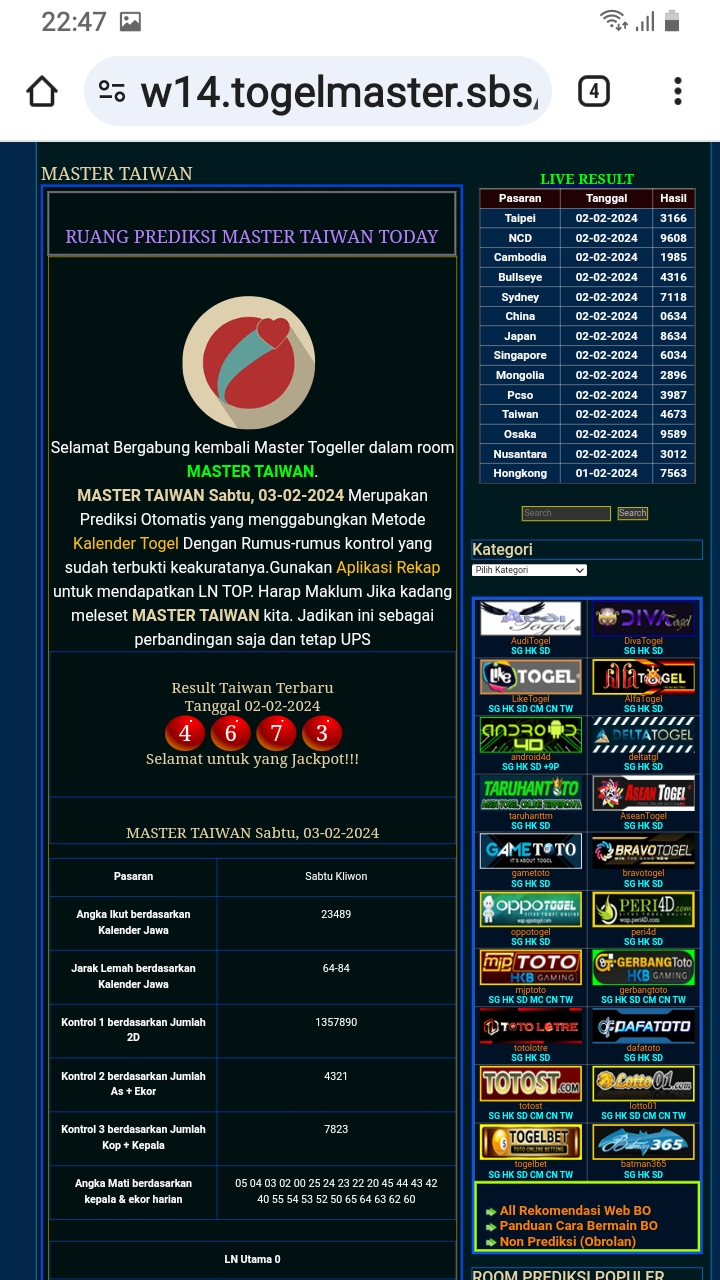 MASTER TAIWAN Minggu, 26-04-2026 Merupakan Prediksi Otomatis yang menggabungkan Metode Kalender Togel Dengan Rumus-rumus kontrol yang sudah terbukti keakuratanya.Gunakan Aplikasi Rekap untuk mendapatkan LN TOP. Harap Maklum Jika kadang meleset MASTER TAIWAN kita. Jadikan ini sebagai perbandingan saja dan tetap UPS